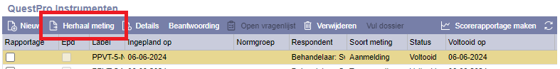 Tot dusverre werd steeds gevraagd om opnieuw het juiste instrument op te zoeken. Ook als het ging om een vervolgmeting met een instrument dat je al eerder binnen het dossier had toegepast. Je kunt nu veel sneller een vervolgmeting inplannen door een voorgaande meting te selecteren en te kiezen voor de functie ‘Herhaal meting’.
