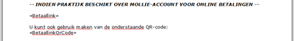 NB: de gehele eerste paragraaf wordt dus gegenereerd door het samenvoegveld <<Betaallink>>, de getoonde QR-code wordt aangemaakt door het samenvoegveld <<BetaallinkQrCode>>.