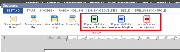 Wil je een sjabloon maken voor correspondentie of facturatie, waarin de kop- en/of voettekst op de eerste pagina afwijken van die in het vervolg van het document? Vanaf deze Incura-versie zijn een aantal hulpfuncties beschikbaar die je daarbij helpen. Je vindt ze bij het aanmaken of bewerken van een sjabloon (zowel type Dossier als type Factuur), in het menu Samenvoegvelden.