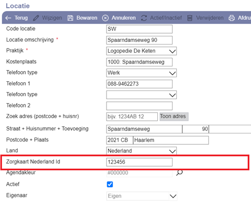 Vul de juiste code voor Zorgkaart Nederland (de zogenaamde ‘HDL-id’) in bij je locatiegegevens in Incura, zie onderstaand schermvoorbeeld. Je bereikt dit scherm via Dashboard > Stamgegevens > Organisatie > Locaties. Als je registreert op welke locatie je zittingen plaatsvinden, dan zal vervolgens de juiste Zorgkaart-locatie in je PREM-uitnodigingen opgenomen worden.