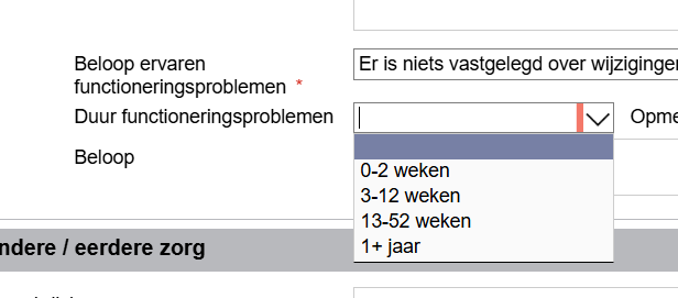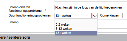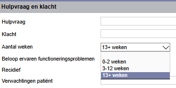 De optie 13+ weken op het anamnese formulier is opgesplitst in 2 opties: 13-52 weken en 1+ jaar.